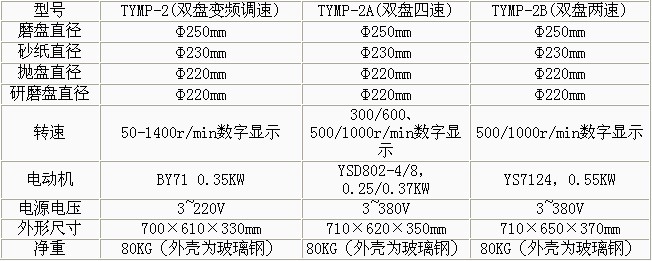 產(chǎn)品概述: •TYMP-2無級(jí)變速金相試樣研磨拋光機(jī) 無級(jí)調(diào)速,金相拋光研磨機(jī),轉(zhuǎn)動(dòng)平穩(wěn),金相切片研磨機(jī),噪音低。 磨、拋、研盤轉(zhuǎn)速獨(dú)立操作。適應(yīng)各種材料的試樣制備 TYMP-2A雙盤四速金相試樣研磨拋光機(jī) 雙盤四速,,轉(zhuǎn)動(dòng)平穩(wěn),,噪音低,,磨、拋、研盤轉(zhuǎn)速獨(dú)立操作。適應(yīng)各種材料的試樣制備 TYMP-2B雙盤雙速金相試樣磨拋機(jī) 雙盤雙速,金相試樣自動(dòng)研磨機(jī),轉(zhuǎn)動(dòng)平穩(wěn),金相研磨機(jī)價(jià)格,噪音低,金相研磨機(jī),磨、拋、研盤轉(zhuǎn)速獨(dú)立操作。適應(yīng)各種材料的試樣制備。 功能特點(diǎn): •該機(jī)集污盤和罩采用玻璃鋼整體制成,金相樣品自動(dòng)研磨機(jī),造型美觀、材料考究、經(jīng)久耐用、維護(hù)保養(yǎng)方便。 本機(jī)集三種功能為一身,全自動(dòng)金相拋光研磨機(jī),使用時(shí)只需更換磨盤或拋盤就能完成各種試樣的粗磨、細(xì)磨、干磨、濕磨及拋光等各道工序。 技術(shù)參數(shù):