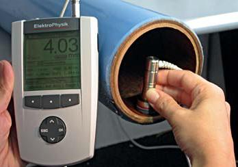 重現(xiàn)性 讀數(shù)的可靠性主要取決于讀數(shù)的重現(xiàn)性。電磁干擾是最普遍的導(dǎo)致誤差的根源,所以保護(hù)測(cè)量系統(tǒng)和探頭電纜免受這些干擾非常重要。 跟傳統(tǒng)技術(shù)不同,SIDSP®在探頭內(nèi)部產(chǎn)生和控制激發(fā)信號(hào);貍鞯男盘(hào)直接進(jìn)行數(shù)字轉(zhuǎn)換和處理從而提供測(cè)量厚度值。厚度值通過探頭電纜數(shù)字化傳輸?shù)斤@示裝置,也就是說:在這種情況下模擬測(cè)量系統(tǒng)的信號(hào)傳輸過程中沒有更多干擾。即使您的測(cè)量工件需要特別長(zhǎng)的電纜線也沒問題,加長(zhǎng)的電纜線同樣具有極強(qiáng)的抗干擾能力。 EPK 的SIDSP®探頭具有極高的重現(xiàn)性。將探頭放在同一測(cè)量點(diǎn)測(cè)量幾次,涂層測(cè)厚儀的用途,每次您都可以得到基本一樣的結(jié)果,再次證明了SIDSP®探頭的優(yōu)秀性能。