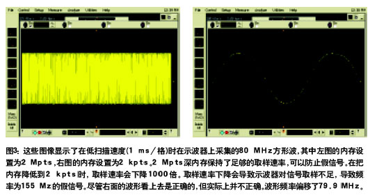 回憶一下第2個(gè)考慮因素中給出的公式示波器的取樣速率至少應(yīng)該是示波器帶寬的4倍。在示波器使用某種數(shù)字重建形式時(shí)最好使用4倍乘數(shù)如sin(X)/X插補(bǔ)。在示波器沒(méi)有采用數(shù)字重建形式時(shí)乘數(shù)實(shí)際上應(yīng)該是10倍。由于大多數(shù)示波器采用某種數(shù)字重建形式4倍乘數(shù)應(yīng)該足夠了。