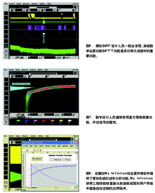 對(duì)關(guān)注波形分析的“高需求用戶”示波器制造商正在中檔示波器和高檔示波器中提供更大的靈活性。某些制造商提供的軟件允許定制復(fù)雜的測(cè)量直接從示波器用戶界面中執(zhí)行數(shù)學(xué)函數(shù)和后期處理。例如可以使用C++或Visual Basic編寫測(cè)量程序然后從示波器圖形用戶界面(GUI)中執(zhí)行程序。用過(guò)這一功能用戶不需把數(shù)據(jù)傳送到外部PC上對(duì)關(guān)注波形分析的用戶這可以節(jié)約大量的時(shí)間。