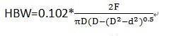 布氏硬度值記為HBS(當壓頭為鋼球時),或者HBW(當壓頭為硬質(zhì)合金球時)兩者計算公式相同。以下以壓頭為硬質(zhì)合金球的硬度值為例: