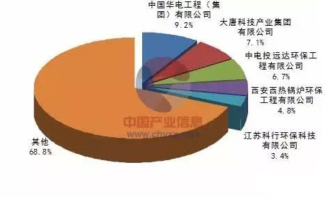 產(chǎn)業(yè)信息網(wǎng)發(fā)布的《2015-2020年中國火電脫硝市場運行態(tài)勢及發(fā)展趨勢研究報告》顯示從截止2014年底的火電脫硝建設(shè)行業(yè)數(shù)據(jù)來看,行業(yè)具有很高的集中度。