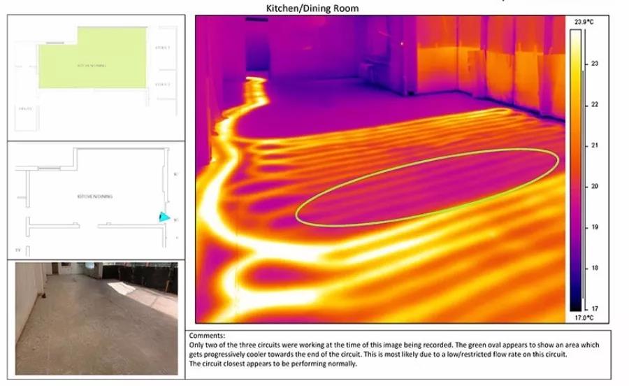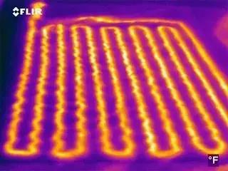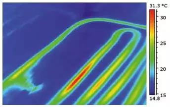 一個典型的實(shí)例是尋找地板加熱系統(tǒng)發(fā)生滲漏的位置。在紅外熱像儀的幫助下加熱系統(tǒng)的滲漏點(diǎn)可以被檢修人員發(fā)現(xiàn)并及時維修。精確確定滲漏點(diǎn)位置可以避免不必要的開挖過程,節(jié)省開支。