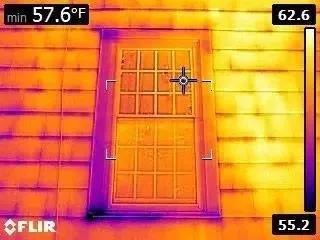 紅外熱像儀能夠快速檢測到流動的氣流密封不嚴(yán)的區(qū)域就可以很方便地被加以識別并且在完成下一步工序之前解決問題從而避免由潛在的施工問題變成花費(fèi)昂貴的棘手問題。