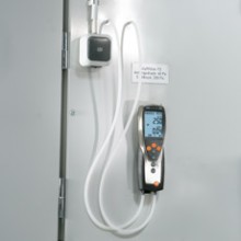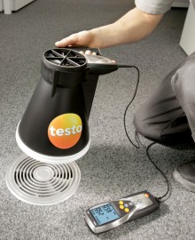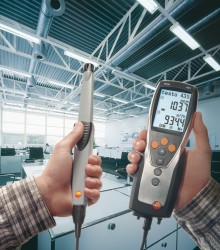 用于管道測(cè)量的流速傳感器都帶有伸縮桿,,便于在大型空氣管道中進(jìn)行操作。如果需要,還可以使用測(cè)量流速的探頭來測(cè)量溫度和濕度。可以根據(jù)應(yīng)用需求選擇熱敏探頭、葉輪探頭或皮托管來測(cè)量管道中的流速。 測(cè)量室內(nèi)空氣質(zhì)量(二氧化碳)![]() 高濃度的二氧化碳會(huì)導(dǎo)致室內(nèi)空氣質(zhì)量變差,從而使人體感覺疲倦,無法集中精神,甚至生病。因此,為了保證良好的室內(nèi)空氣質(zhì)量,二氧化碳濃度一般不應(yīng)超過1 000 ppm。參考范圍為700到1500 ppm。 IAQ探頭(訂貨號(hào)0632 1535)尤為適合監(jiān)控室內(nèi)空氣質(zhì)量。此探頭可以同時(shí)記錄二氧化碳濃度、溫度和相對(duì)濕度。 在通風(fēng)管道內(nèi)使用皮托管進(jìn)行測(cè)量為了確保通風(fēng)和空調(diào)系統(tǒng)的正常功能,對(duì)通風(fēng)管道內(nèi)的空氣流速進(jìn)行檢測(cè)是非常重要的。 testo 435-3的內(nèi)部壓差傳感器用來測(cè)量高流速或高污染的氣流,皮托管測(cè)量范圍從0到64米/秒的空氣流速。testo 435-3可以同時(shí)顯示壓力、流速和體積流量。 在儀器背后的磁貼可以實(shí)現(xiàn)免提操作。 過濾器上壓差測(cè)量![]() 空調(diào)系統(tǒng)配有過濾器,可以防止室外空氣中的灰塵進(jìn)入室內(nèi)。應(yīng)定期檢查這些過濾器,以確保它們運(yùn)行良好。為此,,需要測(cè)量過濾器前后的壓力差。如果壓差過大,說明過濾器被污染,需要更換。 testo 435-3內(nèi)置壓差傳感器,測(cè)量范圍0到25 hPa。在壓差測(cè)量過程中會(huì)進(jìn)行溫度補(bǔ)償,以得到精確讀數(shù)。在儀器背后的磁貼可以實(shí)現(xiàn)免提操作。 熱輻射的測(cè)量![]() 多功能測(cè)量?jī)xtesto 435能夠幫助您可靠地測(cè)量熱舒適度。連接一個(gè)熱輻射黑球探頭(訂貨號(hào)0602 0743),測(cè)量輻射熱量(也就是有效或感知溫度)。熱輻射黑球探頭測(cè)量的有效溫度與人體感知溫度的差值最好不超過± 0.41 K。 室內(nèi)溫度(空氣溫度和有效溫度)的測(cè)量要采取在同一個(gè)地方,相同的條件,如室內(nèi)空氣流速的一致的情況下進(jìn)行。 測(cè)量空氣和表面溫度為了讓人體感覺舒適,達(dá)到最佳狀態(tài),房間內(nèi)必須調(diào)節(jié)空調(diào)運(yùn)行工況。除了建筑結(jié)構(gòu)因素和個(gè)體感覺,以下因素也會(huì)在很大程度上影響室內(nèi)空氣的舒適度:室內(nèi)空氣溫度以及墻壁、窗戶、底板和天花板的表面溫度。 testo 435提供滿足不同應(yīng)用的熱電偶探頭。表面探頭(訂貨號(hào)0602 0393)和空氣濕度探頭(訂貨號(hào)0636 1712)很適合分析結(jié)露問題和霉變的情況。 出風(fēng)口風(fēng)速測(cè)量![]() 為了確保系統(tǒng)的高效使用,每個(gè)管道的進(jìn)出口體積流量都應(yīng)符合要求,,這是一個(gè)基本的前提條件。 在出風(fēng)口處,,適合采用直徑100mm的葉輪風(fēng)速探頭來測(cè)量體積流量(訂貨號(hào)0635 9435),因?yàn)樗鼈兛梢詫?duì)較大面積的流速進(jìn)行綜合測(cè)量,從而排除通風(fēng)格柵所產(chǎn)生的干擾(回路方法)。 在空氣格柵和提升閥的抽風(fēng)口或出風(fēng)口進(jìn)行測(cè)量時(shí),適合采用我們的風(fēng)量罩套裝(訂貨號(hào)0563 4170)以及直徑100mm葉輪風(fēng)速探頭(訂貨號(hào)0635 9435)。通過風(fēng)量罩來記錄整體體積流量值,不需要根據(jù)流速和面積進(jìn)行計(jì)算。這種流量測(cè)量方法簡(jiǎn)單、可靠。 一氧化碳測(cè)量![]() 一氧化碳(CO)是一種無味、無色、無刺激性的氣體,但是有毒。它是在熱源和燃機(jī)內(nèi)的煤、木頭、油、天然氣等含碳物質(zhì)燃燒不充分情況下產(chǎn)生的。一氧化碳濃度增加速度很快,尤其是在沒有足夠氧氣的情況下,并可能對(duì)健康產(chǎn)生不良影響。 即使環(huán)境空氣中含有微量的一氧化碳,環(huán)境一氧化碳探頭(訂貨號(hào)0632 1235)和testo 435-1也能夠檢測(cè)到。