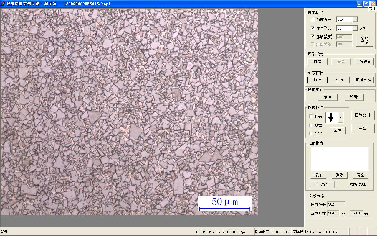 3.定倍存儲(chǔ):按照指定倍率,金相分析軟件下載,存儲(chǔ)圖像文件。該文件可在任何OFFICE系統(tǒng)中打開(kāi),并按指定倍率打印。