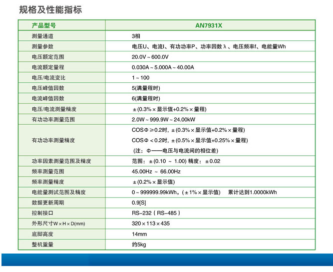AN7931X 三相電參數(shù)綜合測量儀
