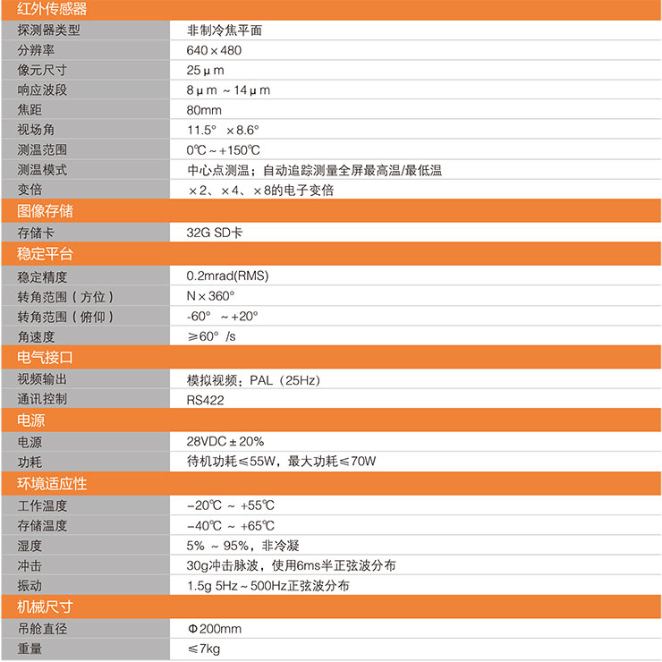 TMS756D紅外光電吊艙采用高精度兩軸穩(wěn)定平臺(tái),進(jìn)口紅外熱像檢測(cè)儀,搭載紅外熱成像儀,產(chǎn)品結(jié)構(gòu)緊湊、體積小、重量輕、性價(jià)比高,可裝備于各型直升機(jī)、無人機(jī)、無人飛艇。主要用于機(jī)載系統(tǒng)對(duì)陸地及水上目標(biāo)的搜索、觀察、跟蹤,建筑專用 紅外熱像儀,滿足航拍航測(cè)、電力巡線、陸地和水上目標(biāo)搜救等各種應(yīng)用需求。
