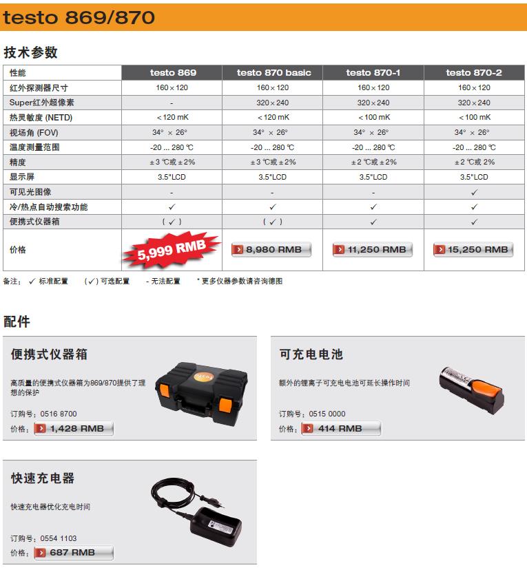 產(chǎn)品包含testo 869 紅外熱像儀, 專業(yè)版分析軟件, USB數(shù)據(jù)線, 電源適配器及可充電鋰電池。