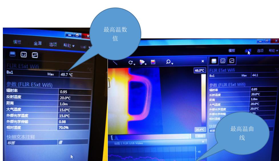 4.6 持續(xù)監(jiān)控:當(dāng)所有數(shù)據(jù)調(diào)整穩(wěn)定,測(cè)溫合理后,可將軟件界面全景化,以利現(xiàn)場(chǎng)查看檢測(cè)結(jié)果